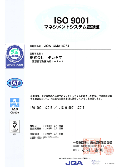 1.ISO規格に適合した品質マネジメントシステムを維持継続する